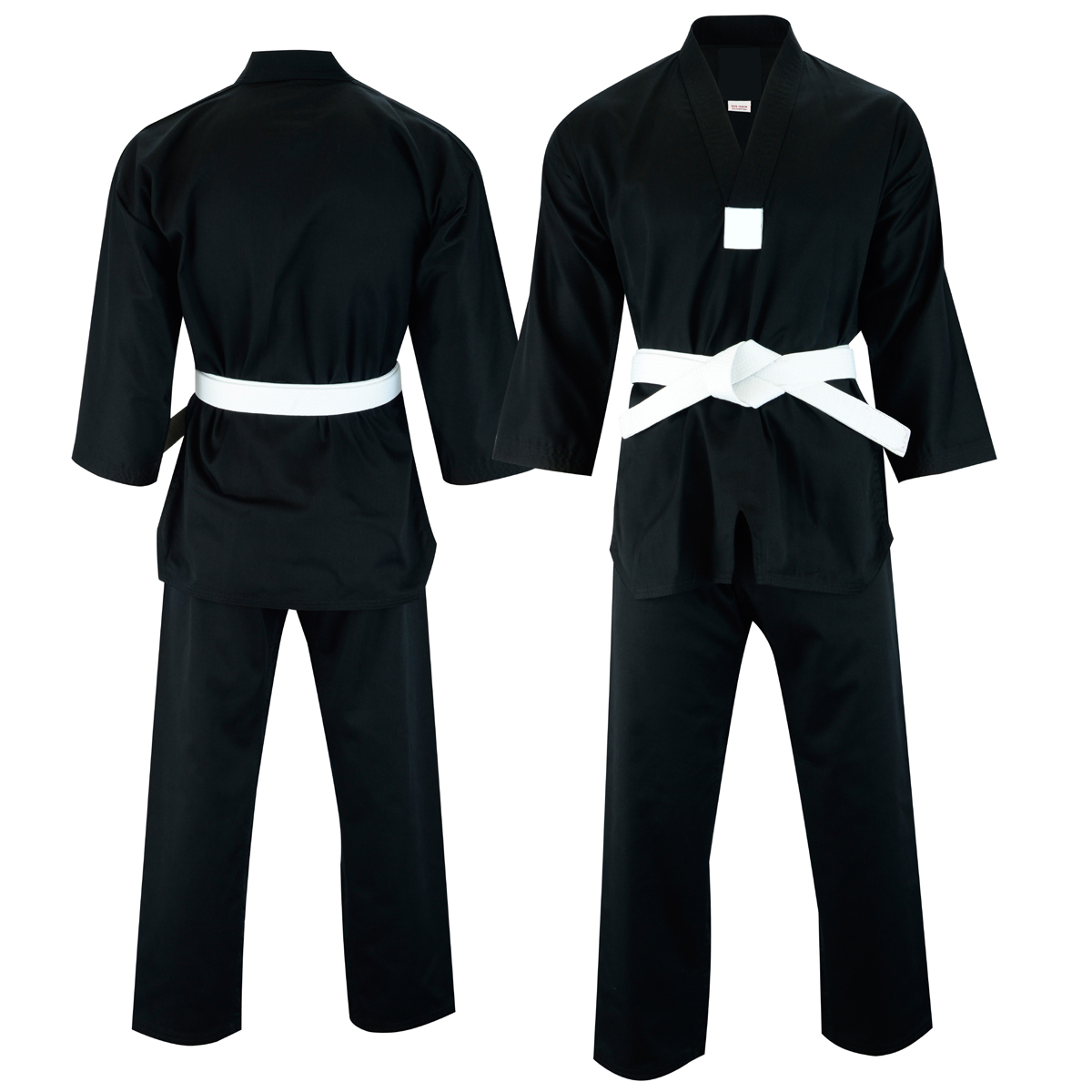 Adult V-Neck Taekwondo Suit Black- 7oz