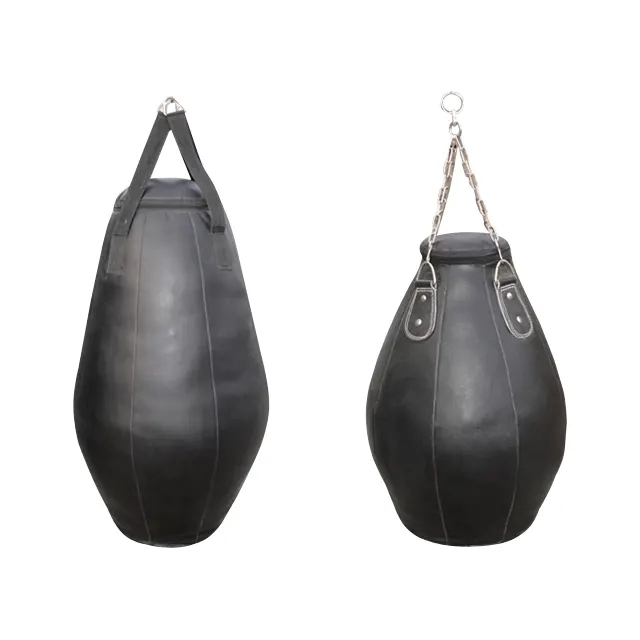 Brief Detail: Unique shape provides the bag with a lower center of gravity making it easier to clinch and deliver knee strikes. Durable leather construction with nylon straps.