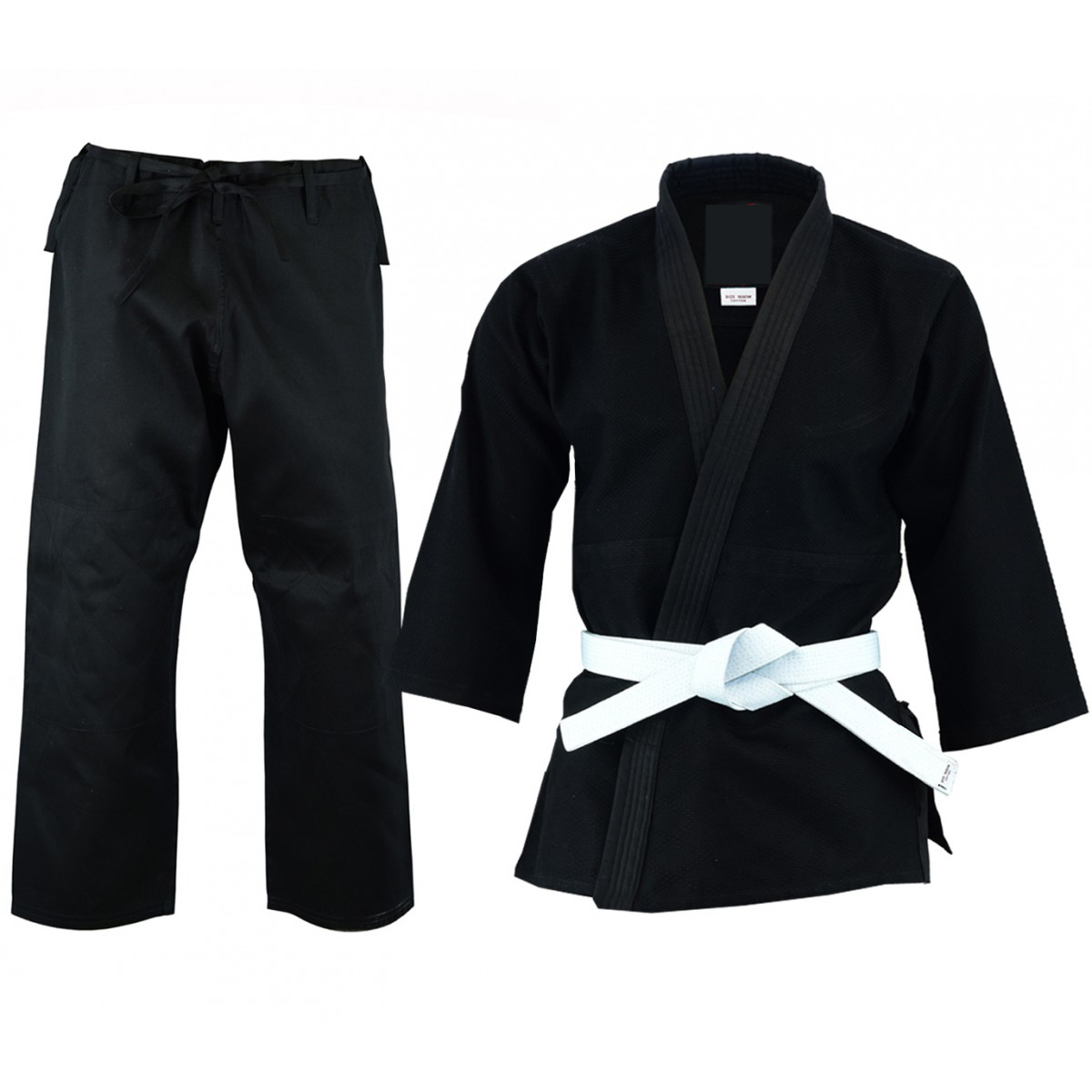 Precision woven, cotton weave to minimize suit shrinkage and prolong durability. Jacket includes reinforced seams and double stitching where needed most, as well as a reassuringly thick collar that’s difficult to grab. Both shoulders have logo embroidery. Reinforced knees for longevity when on the mat. Trousers have an elastic/tie waistband for precise fit. Plain, minimalistic, design allowing you to personalize your own suit. Woven logo on the lapel and woven label logo on the top of the left leg. Belt included. 100% cotton. 450g.