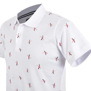 Short sleeved polo shirt. 1?1 rib flat knitted collar. 1?1 rib flat knitted cuffs with Elastane. Reinforced placket with 3 matching colour buttons.